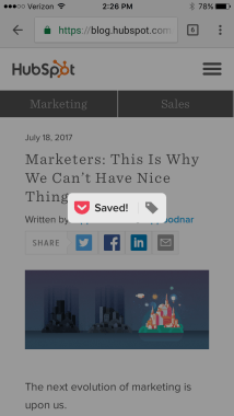 Pocket Screenshot Previous Next Published July 20, 2017 at 750 × 1334 in A Complete Guide to Pocket: The Ultimate Read-it-Later App for Writers